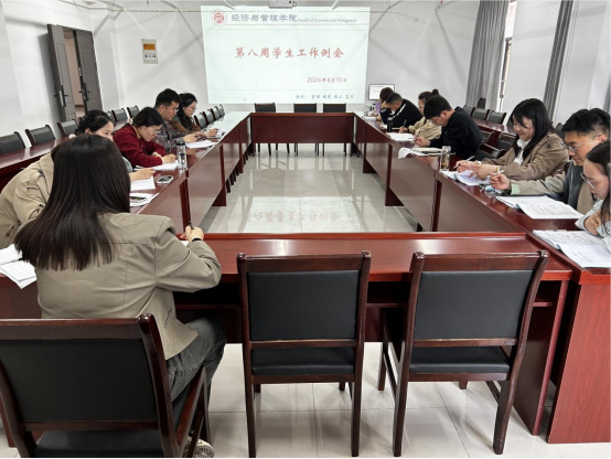 2024年4月15日14:30,best365官方网站在行政楼725办公室召开本学期第八周学生管理工作例会,副院长秦品德、书记助理叶赵强、院长助理张珊以及全体辅导员参加会议,会议由吴玲院长主持。