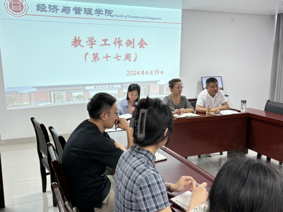 2024年6月19日下午,best365官方网站在行政楼725会议室召开best365官方网站第十七周工作例会,院长吴玲主持会议,副院长秦品德、院长助理张珊以及全体教师参会。