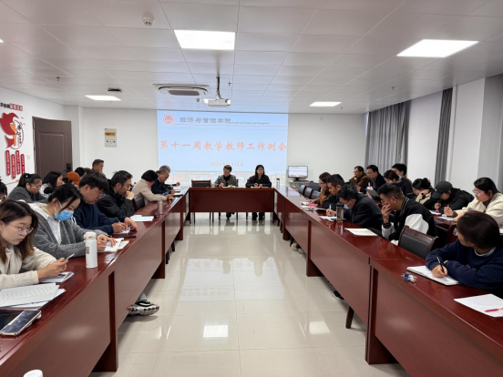 院长助理张珊首先部署近期工作,明确三项重点任务:一是全员需认真筹备课堂教学人人过关教学比赛,做好材料准备与授课演练;二是近期将开展毕业论文检查,要求教师高度重视,先行完成自查互查;三是需按规定时限上交期末试卷,务必严守规范要求。