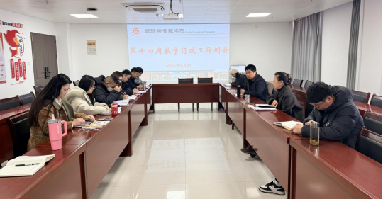 2025年12月03日上午,best365官方网站第十四周行政工作例会在院会议室召开。院长吴玲主持会议,院长助理张珊、叶赵强,学科带头人查道中教授,教学秘书李健及各教研室主任参加会议。
