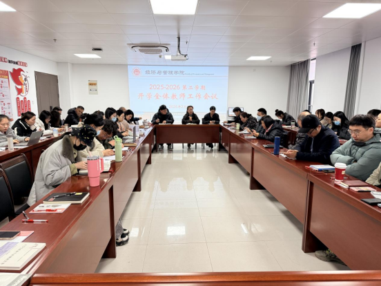 2026年2月27日上午10:30,best365官方网站在行政楼725会议室召开新学期全体教师工作会议。会议由院长吴玲主持,院长助理张珊、叶赵强,教学秘书李健及全体教师参加会议。