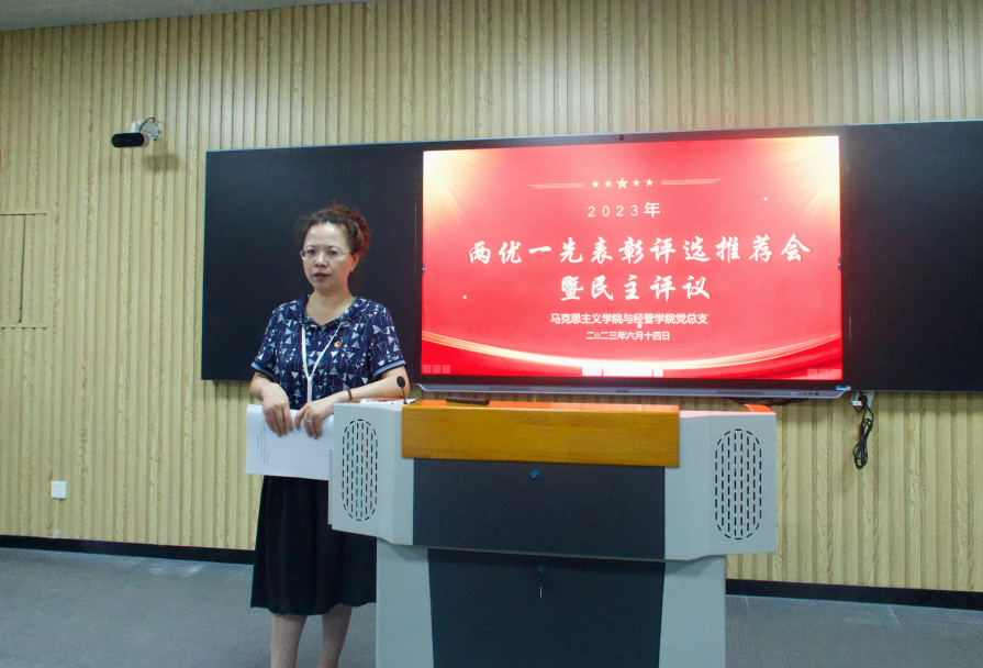 根据学校党委《关于开展2023年“先进基层党组织、优秀共产党员、优秀党务工作者”评选表彰活动的通知》精神,6月14日下午,马克思主义学院与经济管理学院党总支组织召开“两优一先”表彰评选推荐会暨民主评议党员活动,总支书记吴玲主持会议,两个学院的全体党员教师参会。