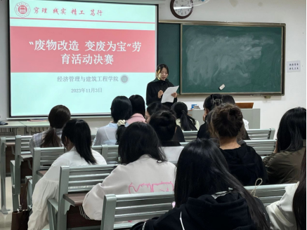 为了提高大学生的环保、创新意识,积极承担环保责任,提升大学生的动手能力,展现大学生的艺术风采,丰富劳动教育主题活动形式,我院于2023年10月28日——11月3日举办“废物改造•变废为宝”劳动教育主题活动。为充分调动同学们参与活动的积极性,激发同学们的参赛热情和创新实践精神,活动采用线上线下相结合的方式进行。初赛通过线上投递作品参赛,根据票选情况选取前十名进入决赛,决赛通过线下展示作品,根据评委老师对作品进行打分评选出作品获奖等级。