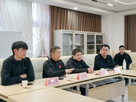 秦品德代表学院热烈欢迎今麦郎集团一行的到来,并就学院的专业情况、师资结构、学生科研竞赛情况、学生的培养模式分别进行了介绍,希望通过校企合作、产教融合,以提高学生的应用能力为目标,在实践教学、实习实训,创新就业等方面能够深化合作。