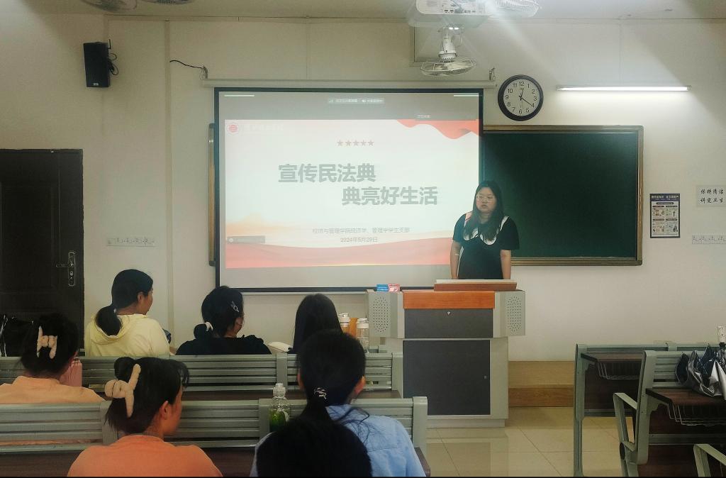 为深入贯彻落实习近平总书记关于民法典学习宣传的系列重要指示精神,加大支部党员普法力度,进一步形成遵法、学法、守法、用法的良好氛围,进一步提升best365官方网站师生法治意识和法律素养,我院经济学、管理学学生党支部于2024年5月29日,在一教419召开《民法典》专题学习会。本次会议由管理学学生党支部组织委员张苗苗同学领学,经济学、管理学学生党支部全体党员参加,经济学、管理学外出实习党员线上参加。