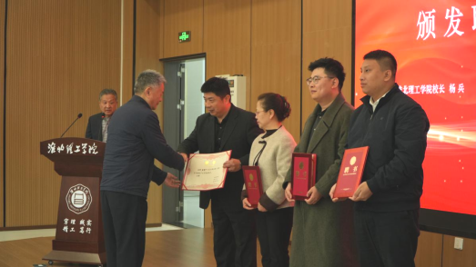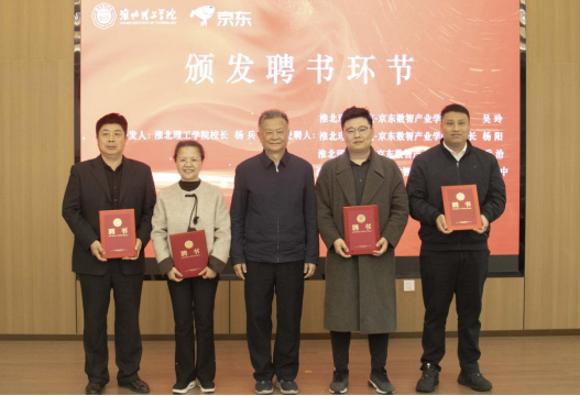 仪式现场举行了聘任仪式。经学校研究决定,聘任吴玲为京东数智产业学院院长,杨阳、乔治、查道中为副院长。校长杨兵为受聘人员颁发聘书,并表示热烈祝贺。