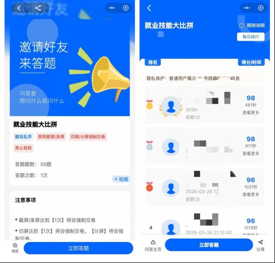此次线上答题活动以赛促学、以赛提能,将就业备考与技能比拼有机结合,有效帮助同学们查漏补缺、强化应试能力,进一步明晰备考方向与求职思路。下一步,best365官方网站将持续聚焦毕业生就业需求,开展政策解读、专题指导、模拟实训等系列就业服务活动,多措并举为毕业生求职备考保驾护航,全力推动毕业生更高质量、更充分就业。