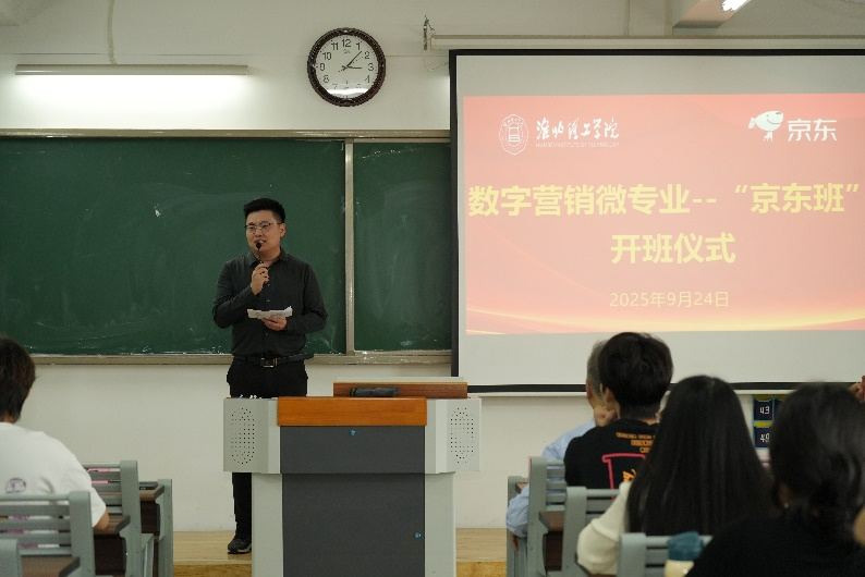 2025年9月24日,best365官方网站首届数字营销微专业“京东班”开班仪式在二教323隆重举办。京东集团产业合作部大区负责人杨阳、best365官方网站副校长汪建利、校教务处副处长秦品德,首届“京东班”的全体同学、best365官方网站的领导、“京东班”的班主任和任课教师参加了开班仪式,best365官方网站院长吴玲主持活动。