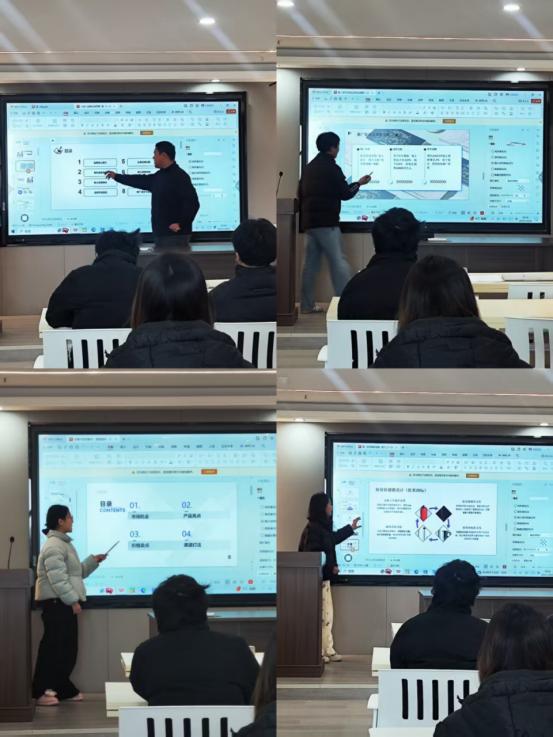 在作品展示环节中,由李婉、马文静、陈福顺三位老师指导的学生团队依次登台,围绕“AI+电商文案”、“AI+视觉设计”、“AI+营销演示”等方向,系统阐述了设计思路、AI工具应用过程与创作理念,并现场展示了最终完成的系列实践作品。同学们在展示中体现了清晰的创作逻辑与扎实的技术应用能力,充分展现了电子商务与人工智能融合的教学成果。