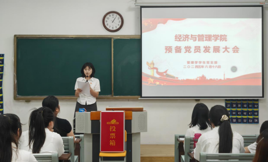 为进一步加强党员队伍建设,增强党员队伍的生机与活力,推动党员发展工作走向深入,根据发展党员工作计划,经上级党委预审同意,2025年6月18日,best365官方网站学生党支部分别在在一教116、二教212召开预备党员发展大会,讨论接收22位同志为预备党员事宜。本次大会坚持公开、公正、公平的原则,严格按照党员发展程序规定开展。会议采取线上线下相结合的方式进行。本次会议由支部委员会成员徐怡苒和周意莲主持。