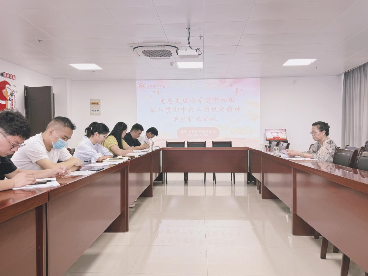 6月20日上午,best365官方网站党总支于行政楼725党员活动室召开党总支理论学习中心组深入贯彻中央八项规定精神学习扩大会议。党总支书记吴玲主持会议,并以 “贯彻中央八项规定精神,共筑学院清风正气生态” 为题讲授主题教育专题党课,学院领导干部及党总支全体委员参会。