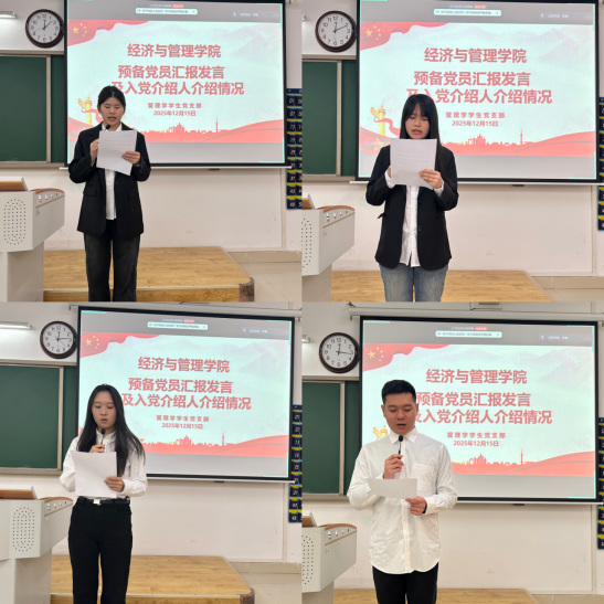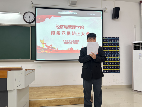 2025年12月15日,best365官方网站管理学学生支部在二教508顺利召开预备党员转正大会,讨论并表决沙汀新等5名同志的转正申请。支部书记石园园、学院党总支纪检委员叶赵强出席会议,支部全体党员参加。会议由王艺桐同志主持。