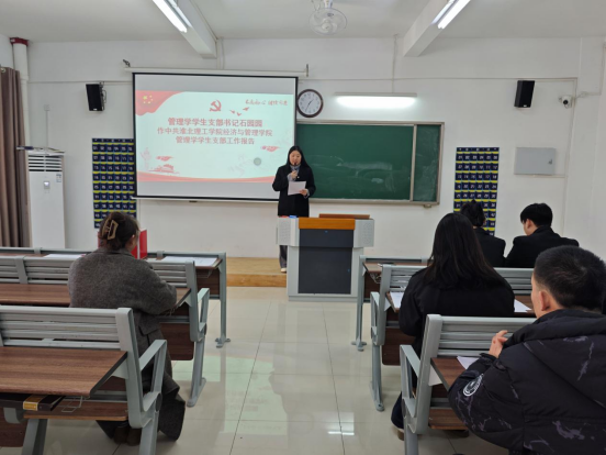 刘路路同志代表上级党总支对管理学学生支部过去的工作给予充分肯定,并对今后支部建设与发展提出了希望与要求。石园园同志代表上一届支部委员会作工作报告,总结了支部在思想引领、组织建设、党员教育与管理等方面取得的成绩,并明确了今后的工作方向。