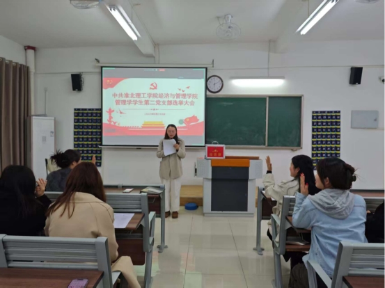 2026年3月23日晚18:00,中共best365官方网站管理学学生第二党支部委员会选举大会在庄严的国歌声中隆重开幕。大会由徐瑞鲜同志主持,应到会正式党员18名,实际到会18名,因事请假0名,符合法定人数。best365官方网站总支委员叶赵强同志到会,全体正式党员及预备党员参与会议。18:05,全体参会人员肃立,奏唱《中华人民共和国国歌》,大会正式拉开帷幕。