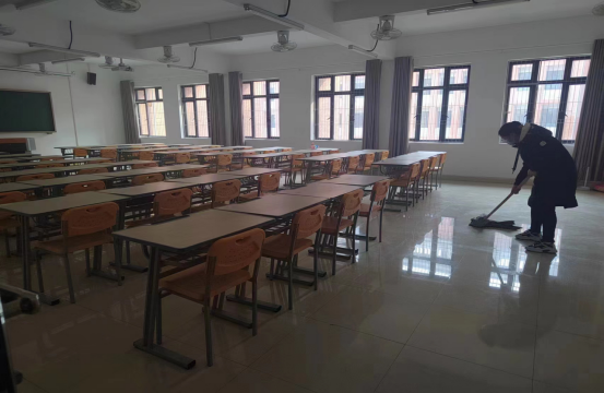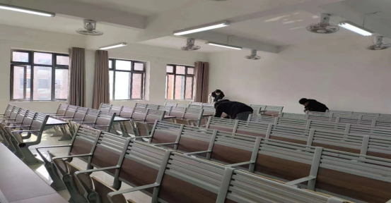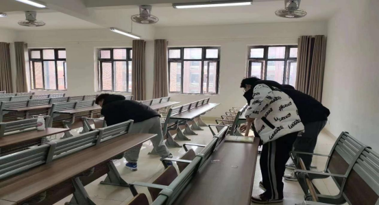 活动开始前,学生会负责人在1号教学楼2楼召集参加本次活动的同学,强调了本次活动的区域和标准;活动开始后,一部分同学拿着环保清洁袋,不嫌脏乱,将桌面上的纸团、废纸屑进行清理,另一部分同学们拿着扫帚,清扫教室、实训室地面,同学们根据分工,到各自负责的区域进行消毒清洁;在大家的共同努力之下,教室、实验室焕然一新,。
