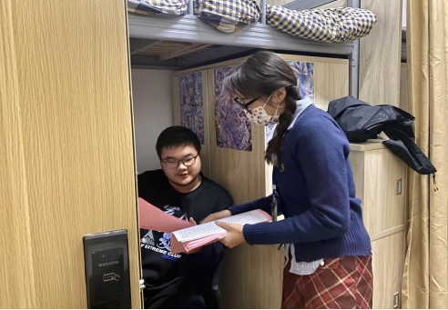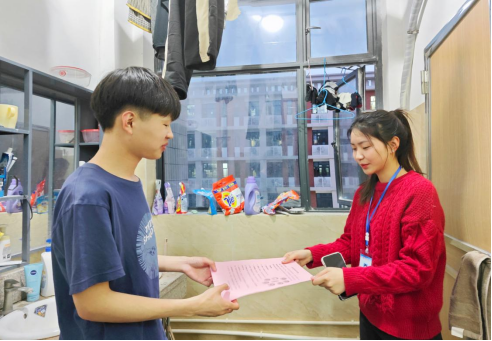走访过程中,叶赵强带队对学生内务进行了细致检查,同时向学生们宣传春季传染病的防控措施,学生会成员向每个宿舍发放《春季传染病防控措施知识宣传册》,并予以耐心解读。在查寝过程中,叶赵强结合宿舍具体情况和学生进行深入交流,提醒大家要重视宿舍卫生及宿舍安全,希望同学们养成良好卫生习惯,不要随地吐痰、勤洗手、勤换洗、吃熟食、喝开水;按时完成预防接种;在学校还是要戴好口罩、开窗通风、合理膳食、积极锻炼、少凑热闹、规律作息;如出现发热、咳嗽、头痛、乏力等症状时应及时到校医院就医;如果传染病被确诊,积极配合治疗,做好消毒隔离,时刻以良好的精神状态坦然面对生活。