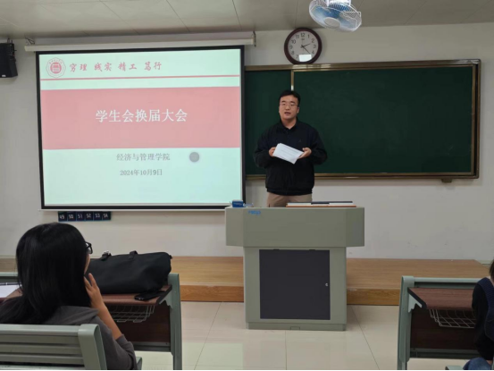 为给best365官方网站注入新鲜血液新活力,进一步完善学生组织体系、优化队伍建设、提升学生干部的质量,于2024年10月9日下午2时在二教211教室举办2024年学生会换届大会暨学生会干部培训会议。best365官方网站书记助理叶赵强,团总支书记员禹辛、辅导员以及新一届学生会35名成员参加本次换届大会。会议由团总支书记员禹辛主持。