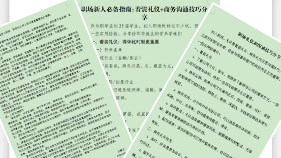 本次活动吸引了众多毕业班学子积极参与,他们结合自身实习和工作经历,踊跃分享职场礼仪和人际沟通方面的实用技巧与心得体会。投稿作品内容丰富,涵盖了职场着装礼仪、商务礼仪规范、有效沟通技巧、团队协作能力等多个方面,为即将步入职场的同学们提供了宝贵的经验参考。