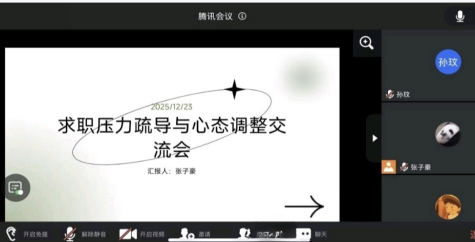 为缓解2026届毕业生求职焦虑,精准对接就业心理需求,助力建立积极求职心态,best365官方网站于2025年12月19日至25日,以 “职启护航” 为主题,开展求职压力疏导与心态调整线上班会活动。活动以班级为单位,搭建起毕业生同辈交流、压力释放、经验共享的优质平台。
