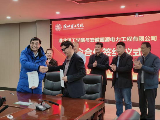 随后,校企合作签约仪式正式拉开帷幕,机电与建筑工程学院院长张安宁与安徽国源电力工程有限公司李广连董事长作为双方代表签署合作协议,校领导与企业代表共同见证这一开启校企深度合作的重要时刻。