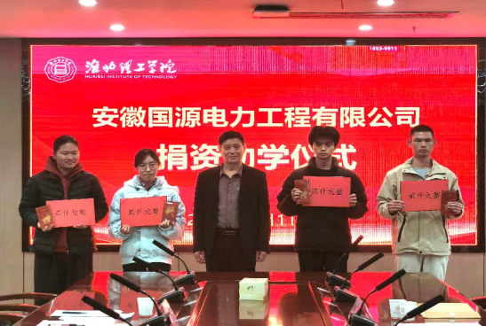 随后举行捐资助学仪式,李广连代表安徽国源电力工程有限公司分别向四名品学兼优的困难学生每人捐资2000元。