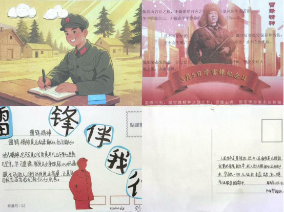 活动面向不同年级学生设置了分层创作要求,让每位同学都能充分参与其中。非毕业班同学完成AI 设计后,通过手绘、拼贴、刺绣等方式进行手工二次创作,并附上心得感悟;毕业班同学提交电子版 AI 设计作品及心得。同学们以科技为笔、以创意为墨,将对雷锋精神的理解融入一张张精心制作的明信片中,让传统精神与数字时代碰撞出崭新火花。