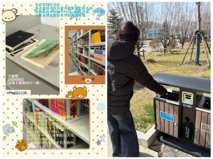 本次活动于2026年3月6日至18日开展,在传统拍照打卡基础上创新推出“打卡 + 微行动”模式,引导学生走出课堂、躬身实践。同学们主动参与校园文明劝导、图书馆书籍整理、社区垃圾清理、帮扶老弱群体等志愿服务,用实际行动诠释雷锋精神。