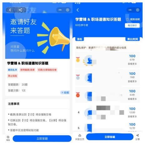 二、“雷锋精神记心间·线上答题悟初心”——雷锋知识答题