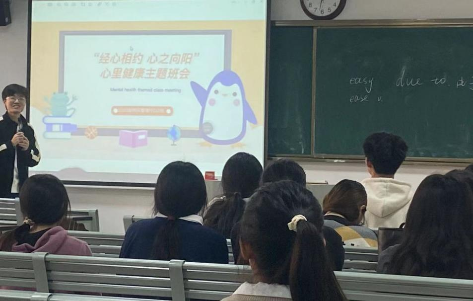 每个班的心理委员都为这次班会的顺利召开做了充足的准备,他们在讲台上耐心地为同学们讲解关于心理健康方面的各种知识和心理健康的重要性,分享应对压力和焦虑的办法等。