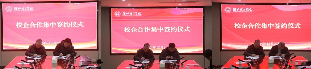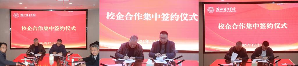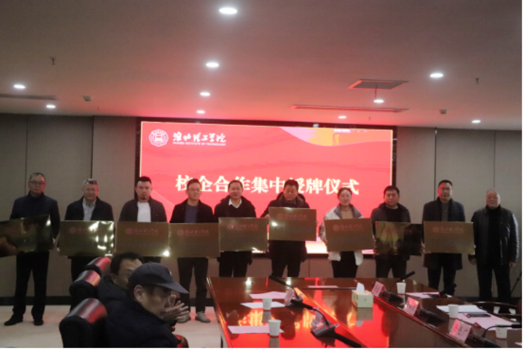 交流发言结束后,在热烈的掌声中,汪建利依次与九家企业签订了校企合作协议、进行“实习就业基地”的授牌。