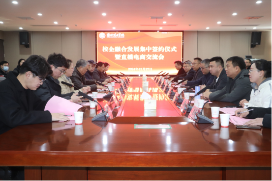 为进一步深化产教融合,加强校企合作,推动我校电商专业高素质应用型人才的培养,12月27日上午,我校在行政楼814会议室成功举办了一场校企融合发展集中签约仪式暨直播电商交流会。此次活动汇聚了来自安庆、六安、淮北等地的九家知名企业,副校长汪建利、教务处处长陈国平,学生处(就业处)处长孙增响以及经济与管理教师代表参加了本次活动,best365官方网站院长吴玲主持活动。