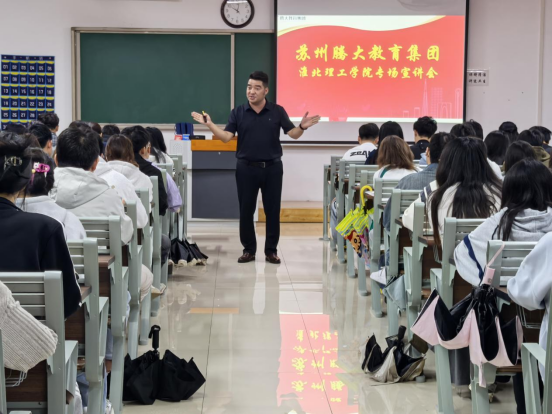 本次招聘会由王绎程老师主持。融智美教育集团代表刘老师全面介绍了公司的发展历程、企业文化及招聘岗位,涵盖课程咨询师、教务/学习管理师与各学科托管老师等职位,并就薪酬福利和晋升通道作了详细说明。集团代表从当前就业环境出发,特邀我校2025届数学与应用数学专业优秀毕业生李安,现场分享从学生到职场人的成长与转变,表达了对淮理学子加入的诚挚欢迎。企业还系统介绍了发展规模、岗位需求及专业要求,深入阐释了“利员工,利社会”的企业文化核心理念,并通过现场答疑环节进一步解答招聘相关事宜。