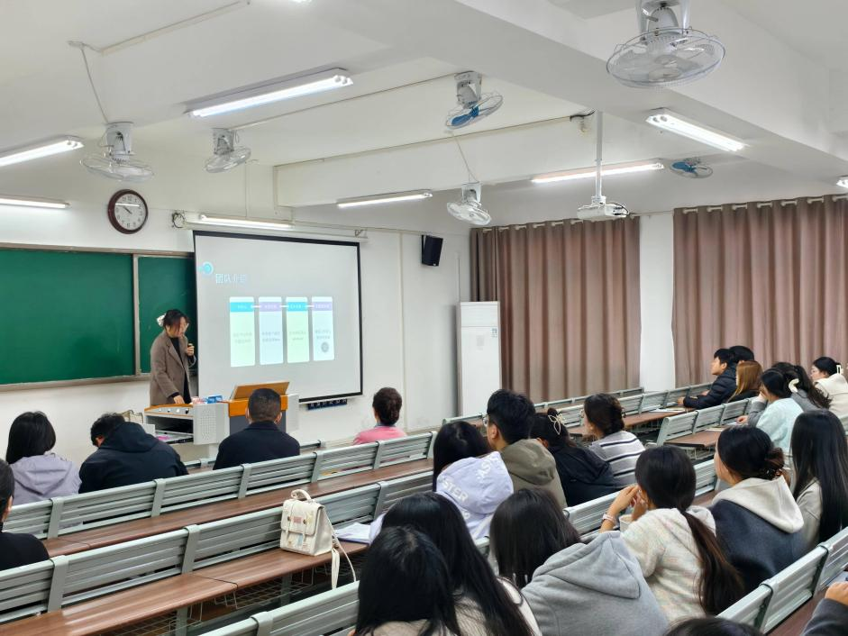 在互动交流环节,同学们围绕岗位能力要求、实习培养机制等问题积极提问,范雪梅与周雪如逐一耐心解答,现场氛围热烈。范雪梅表示,企业高度重视人才梯队建设,希望通过校园招聘吸纳更多优秀学子,同时期待与我院深化合作,共同培养符合产业需求的应用型人才。