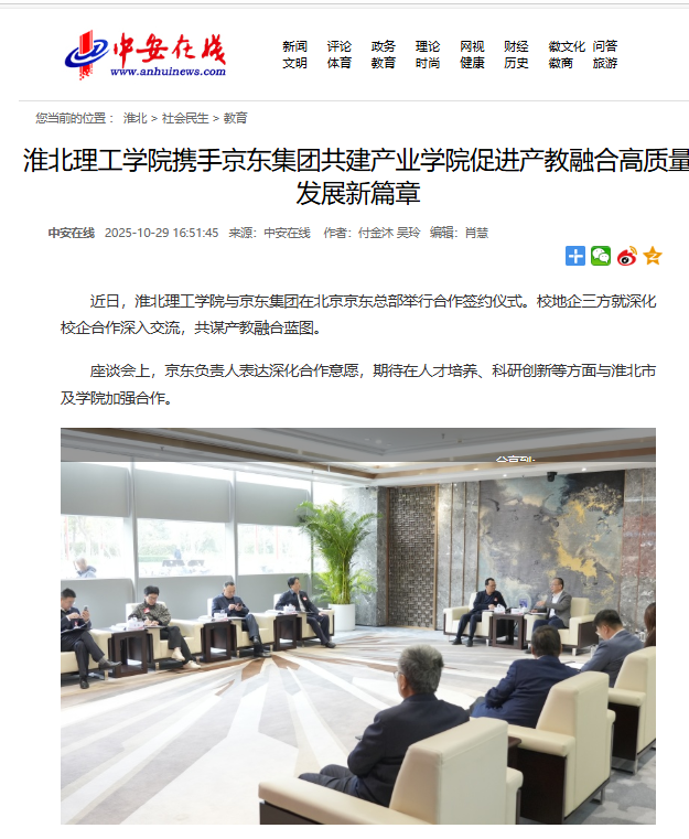 近日,best365官方网站与京东集团在北京京东总部举行合作签约仪式。校地企三方就深化校企合作深入交流,共谋产教融合蓝图。对此,中安在线进行了报道: