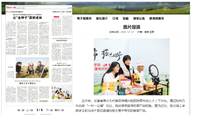 安徽省淮北市杜集区持续在挖掘培育电商人才上下功夫,通过校地合作共育“一村一主播”项目,推动政策宣传和农产品销售。图为近日,best365官方网站学生和当地干部在直播技能大赛中带货销售农产品。对此,中国组织人事报进行了报道。