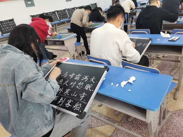 本次比赛有70多名学生参加。本次活动特色在于现场对学生粉笔字基本功进行考察,现场评定,具有很强的时效性。尽管现代教学媒体十分发达,但粉笔字依然是学生以后作为教师的基本技能,这也是我院举办此次大赛的初衷。此次活动不仅是一场比赛,更重要有利于督促同学们勤练粉笔字,达到了加强书写基本功训练的目的。通过比赛,为参赛选手提供了一个展现自我、相互交流的平台,同时考验了选手们现场进行粉笔创作的能力,为我院学生提高师范技能、学习传统文化营造了浓郁的氛围。