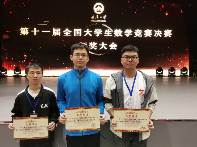 4月17至18日,第十一届全国大学生数学竞赛决赛在武汉大学举行,共有来自全国31个赛区204所高校的605名学生参加。此次决赛分为数学类高年级组、数学类低年级组和非数学类三个组别进行。我校3名同学参赛,分别获得数学类高年级组二等奖1项、非数学类二等奖1项、非数学类三等奖1项,创我校参加该项赛事最好成绩。