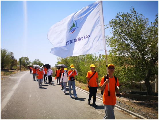 710日上午,同学们在带队老师的组织下乘车赴150团,参观位于准噶尔盆地古尔班通古特沙漠南缘的驼铃梦坡沙漠生态旅游区,并实地测量沙丘相关数据。