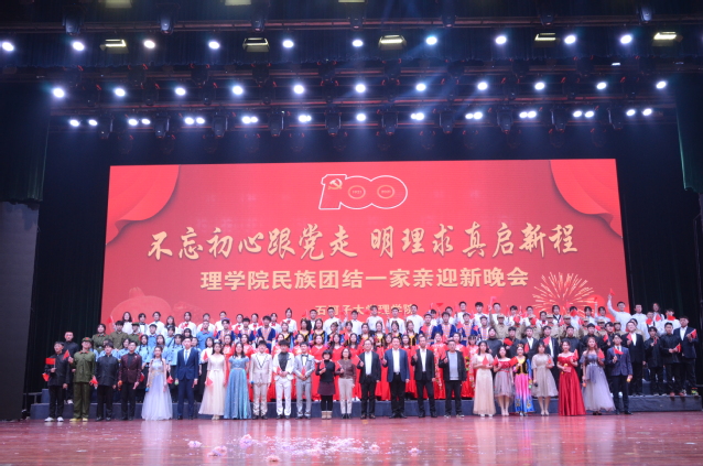 工作总结表彰大会完毕,37000cm威尼斯“不忘初心跟党走 明理求真启新程”民族团结一家亲迎新晚会正式开幕。迎新晚会以民族团结为背景、以庆祝建党百年为主线,按中国共产党重要的历史阶段选择《开天辟地为中国》《改天换地为人民》《惊天动地为复兴》三个篇章,通过诗歌朗诵、舞蹈、歌曲、音诗画、小品等多种形式展现37000cm威尼斯师生对2021级新同学的热情欢迎,对祖国的热爱。