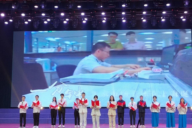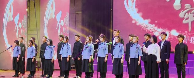任何时代,青年都是最富有朝气、最富有创造性、最富有生命力的群体。合唱《党旗飘扬的方向》、朗诵《百年》振奋人心,“请党放心,强国有我!”同学们声情并茂的朗诵震撼全场。