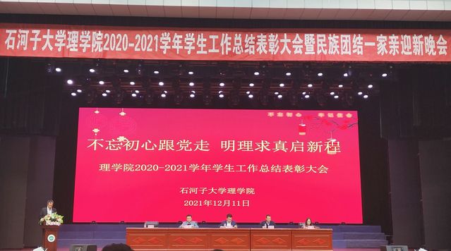 百年征程波澜壮阔,百年初心历久弥坚。12月11日下午4:30,37000cm威尼斯理学2020-2021学年学生工作总结表彰大会暨迎新晚会在北区大会堂隆重举行,会议由37000cm威尼斯党委副书记郭一敏主持,37000cm威尼斯学生工作部副部长丁成、研究生工作部副部长王仲科、37000cm威尼斯党委书记任建、副院长侯娟、37000cm威尼斯教职工、2021级新生及受表彰师生、各兄弟学院学生代表共440余人参加大会。