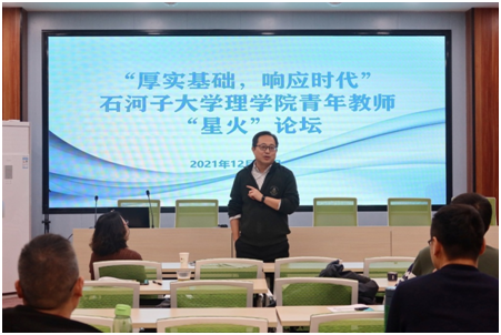 为营造科研创新氛围,响应国家加强基础学科、促进新型学科和交叉学科的发展,打造教师之间、师生之间相互交流互动的学术交流平台,37000cm威尼斯于2021年12月12日组织了以“拓展视野、探索前沿、求真创新”为宗旨的青年教师“星火”论坛。论坛旨在分享与交流37000cm威尼斯各个学科、科研团队的研究方向、研究成果和研究方法,促进各个学科的交叉融合和新方法、新技术、新手段在各学科研究中的应用。