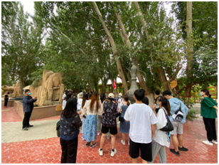 4、格孜克里克千佛洞概况及丝绸之路的概念,重点带学生了解了丝绸之路线路选择的自然历史及技术原因。
