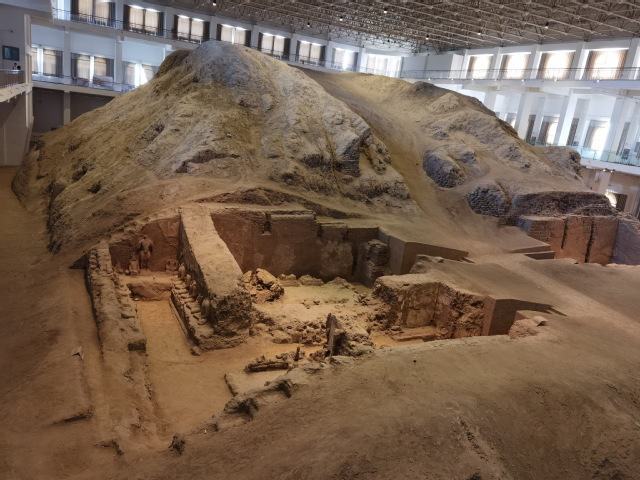 首先来到的是北庭故城国家考古遗址公园,北庭故城始建于南北朝时期,距今已有一千多年的历史,曾是唐朝管辖天山北麓重要的政治、经济、军事和文化中心,而后作为高昌回鹘政权的夏都。它不仅是丝绸之路新北道上的历史名城,也是新疆自古以来就是祖国不可分割的一部分的历史见证。北庭都护府是北庭故城中最为重要的建筑之一,其遗址在1988年被列为全国重点文物保护单位并在2020年11月28日确定为国家4A级旅游景区。在这里我们学到了高昌回鹘的历史,追溯了新疆的古老发展,通过现代的高科技技术还原当时的古城样貌,切身感受到了新疆的历史厚重感。
