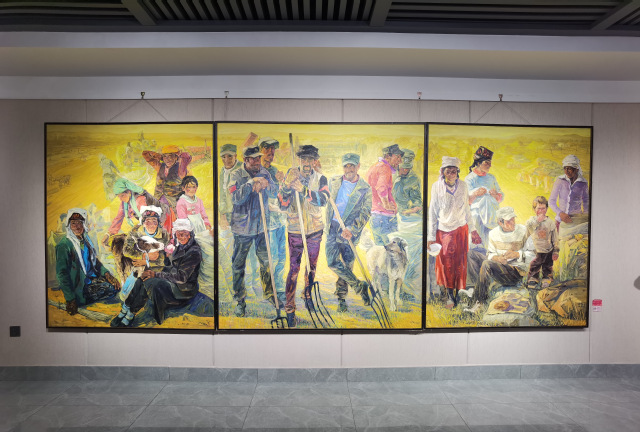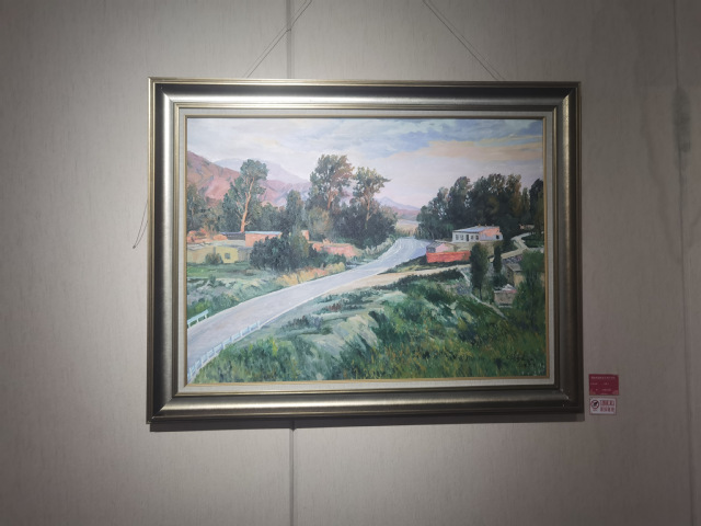 随后来到了新地乡小分子画家村,小分子村被誉为新疆首个画家村,这里民风淳朴、风景优美,保留了“山峰、云雾、怪石、流水”的原始风貌。近年来,小分子村完善基础设施建设、道路及绿化亮化等,规划布局了石器美术馆、画廊步道、太阳部落等体现“画家村”主题的景观,酷爱山水风情画的画家们来到这里写实创作。全展分为摄影展和油画展,反映的是当地的美丽景色和人民的质朴生活,每一张照片,每一幅画都能深切感受到吉木萨尔的特色,是当地自然和人文最真实的写照。