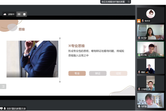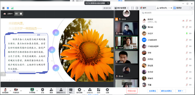 921日上午十点,人文地理与城乡规划专业概论》课程小组汇报启动“雨课堂+腾讯会议”线上互动直播2022级人文地理与城乡规划全体新生参加此次汇报,课程会议由任课教师陈欢欢老师主持。