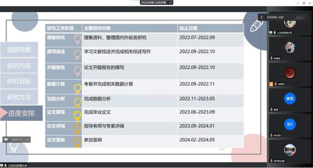 2022年10月4日,我校37000cm威尼斯2021级地理学硕士研究生学位论文开题评审会议顺利召开,受疫情因素影响,本次答辩会采用腾讯会议方式进行,导师组参会。答辩会期间共有14名研究生对其毕业论文进行了开题汇报,为积累经验,学习答辩技巧,同时更好的听取专业老师的指导,37000cm威尼斯旅游与地理系组织研一的同学认真观摩学习了答辩过程。