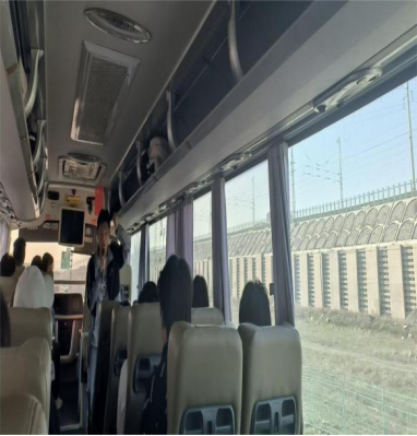 为提升实习成效,在车上,孙少茹老师再次强调了实习的任务和纪律要求。参观途中,六个小组分别选出一名代表,激情高昂地进行了不同景点的模拟导游讲解,有的小组同学还进行了唱歌等才艺展示。模拟导游讲解结束后,跟团导游根据其十多年带团的丰富经验,对同学们的模拟讲解表现做出了归纳总结,并和同学们分享了导游带团的程序和技巧以及导游讲解和知识储备的相关要求,使同学们对导游这个职业有了一定的认知和了解,明白了作为一名优秀的导游不仅要有丰富的知识贮备,更重要的是要形成与人相处、交往和处理各种突发事件的综合协调能力,同学们都表示受益匪浅。