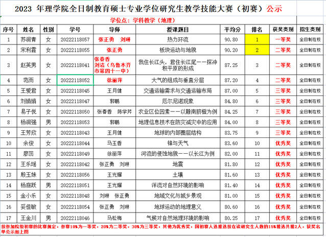 学院高度重视本次比赛的组织开展,各专业领域负责人特别邀请了石河子市第二中学物理教研组组长郭洪义、石河子市教培中心教研员苏新建、石河子市高级中学地理教研组组长刘春玉、石河子市第二中学地理教研组组长黄婷慧、石河子市第一中学数学专业高级教师刘振华、石河子市第一中学数学专业高级教师聂华斌等身在高中教育教学一线的校外导师作为本次比赛评委,为我院各专业教育硕士的教学技能给予点评和指导。