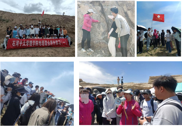 本次实习,所有学生都在老师们的带领下有序进入实习区、严格遵守实习纪律。老师们对于各种地质现象、地貌类型的讲解分析深入浅出、细致入微让同学们受益匪浅。过程中,高素芳老师和孙少茹老师带领同学们和新疆师范大学的同学拍照合影留念,记录了各个大学之间合作交流、相互促进、共同进步的良好氛围。